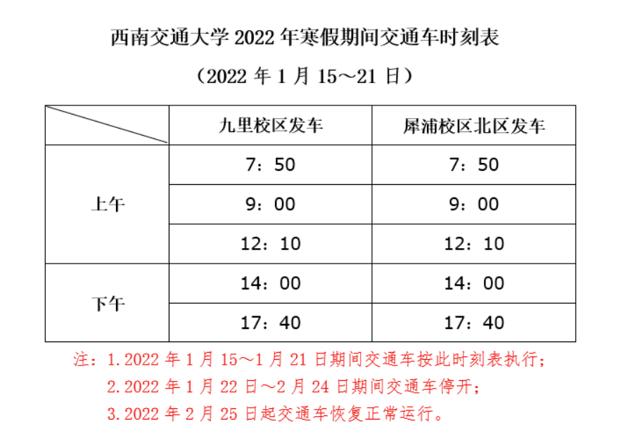 四、寒假学校校车安排