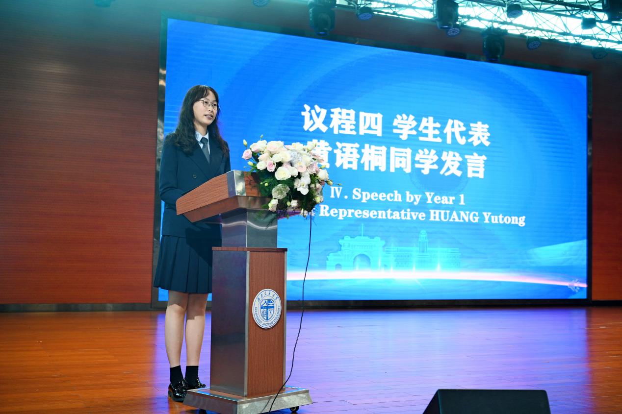 2024级新生黄语桐代表新生发言。她以一名材料专业新生的视角,表达了对老员工活的憧憬和期待;同时,鼓励大家要珍惜在伟德国际1949始于英国的每一刻,通过努力学习和积极参与各项活动,不断提升自我,成为更好的自己。