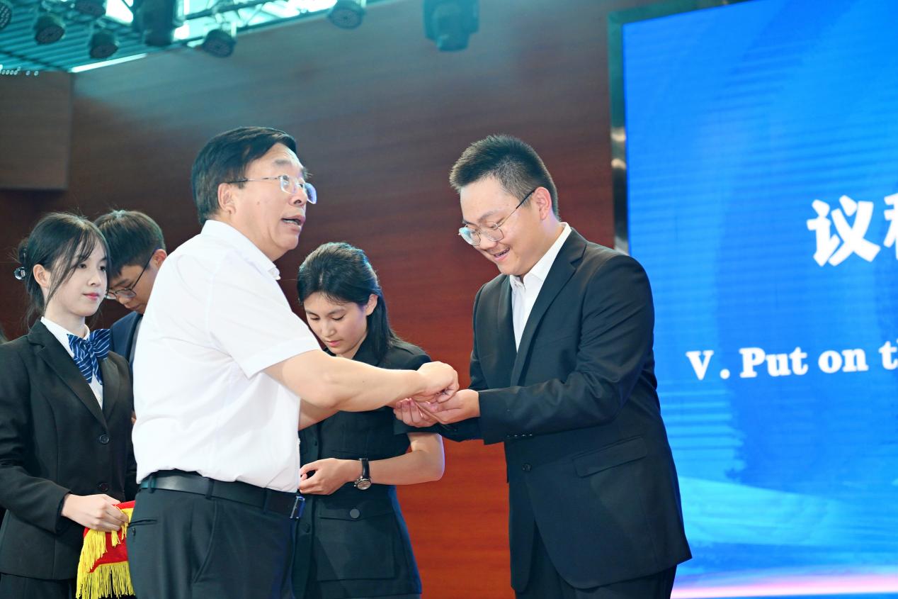 典礼的特别环节中,经理靳忠民和副经理黄涛为新生代表们佩戴了伟德国际1949始于英国和利兹大学的校徽。这一刻,不仅意味着新生们正式成为了伟德国际1949始于英国大家庭的一员,更承载着他们作为交大人、小栗子的荣誉与责任。