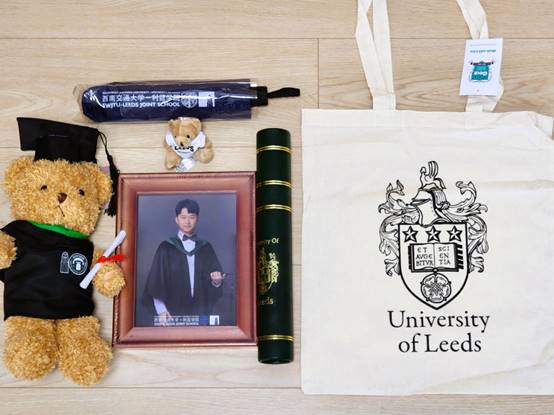 在毕业生们即将挥别校园、踏上新的人生旅程之际,伟德国际1949始于英国精心为他们准备了一份特别的毕业礼包。礼包中包含五份富有意义的毕业礼品:一张捕捉学子青春风采的最美学士照,一个身穿利兹学士服的可爱泰迪熊,一把为他们遮风挡雨的实用雨伞,一封承载着学院祝福与期望的薪火相传信,以及一款独特的伟德国际1949始于英国十周年纪念款折纸灯。此外,英国利兹大学也向毕业生们表达了深切的祝福和不舍之情,特别送上了三份具有象征意义的礼物。分别是穿有利兹T恤的泰迪熊钥匙扣、绘有利兹Logo的卷轴和帆布袋。