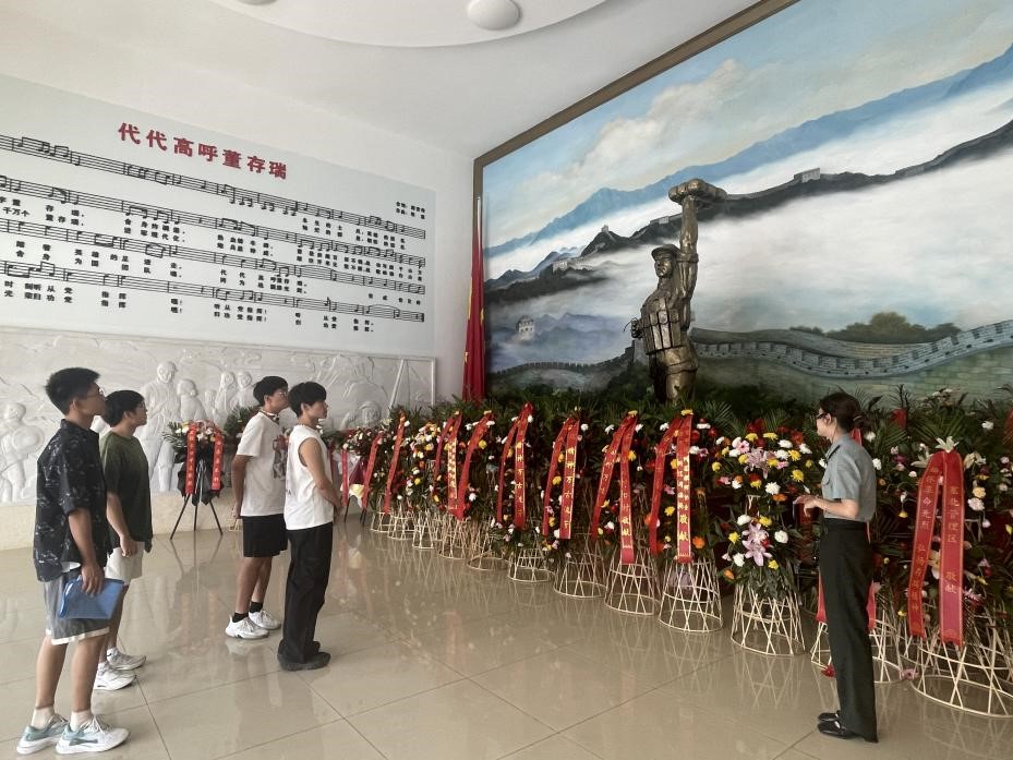 7月16日,实践队员前往怀来县董存瑞纪念馆,参观董存瑞生平事迹展,深刻感受这位“爆破英雄”舍生忘死、英勇无畏的革命精神。董存瑞手持炸药包、高呼“为了新中国,前进!”的壮烈形象,在队员们心中留下了不可磨灭的印记。