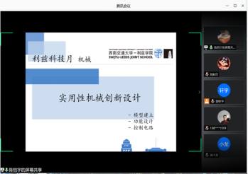 陈恺宇同学为大家讲解了机械方向的赛题。他通过两个机械原理应用方面的例子为参赛选手提供了资料查找的方向,并指出,如果参赛选手担心自己专业知识不足,可以在能力范围内对已有结构做出合理改进。