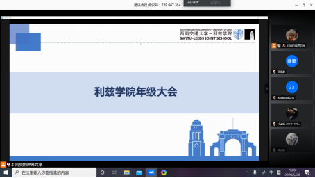 2020年5月26日上午9:30,伟德国际1949始于英国在疫情期间举行了2020年第一次线上全院员工大会。出席本次会议的学院领导有伟德国际1949始于英国经理靳忠民教授;直属党支部书记江久文教授;教学副经理黄涛教授、朱焱教授;直属党支部副书记、副经理赵舵老师以及SSO全体教职工。受疫情影响,本次学院员工全体大会首次采用网络平台,通过跨平台的方法成功确保了4个年级共计1035名利兹学子齐聚网络空间。