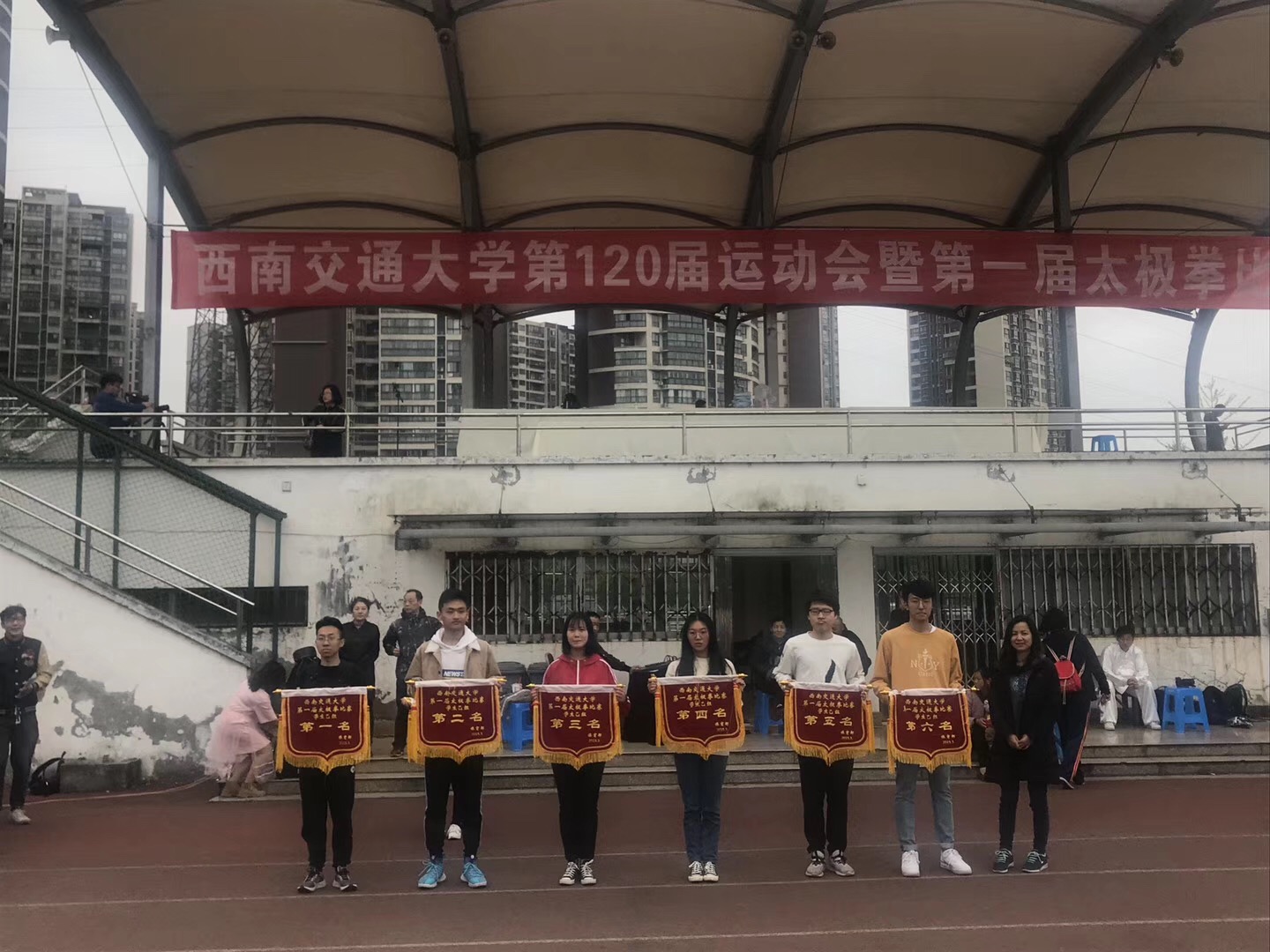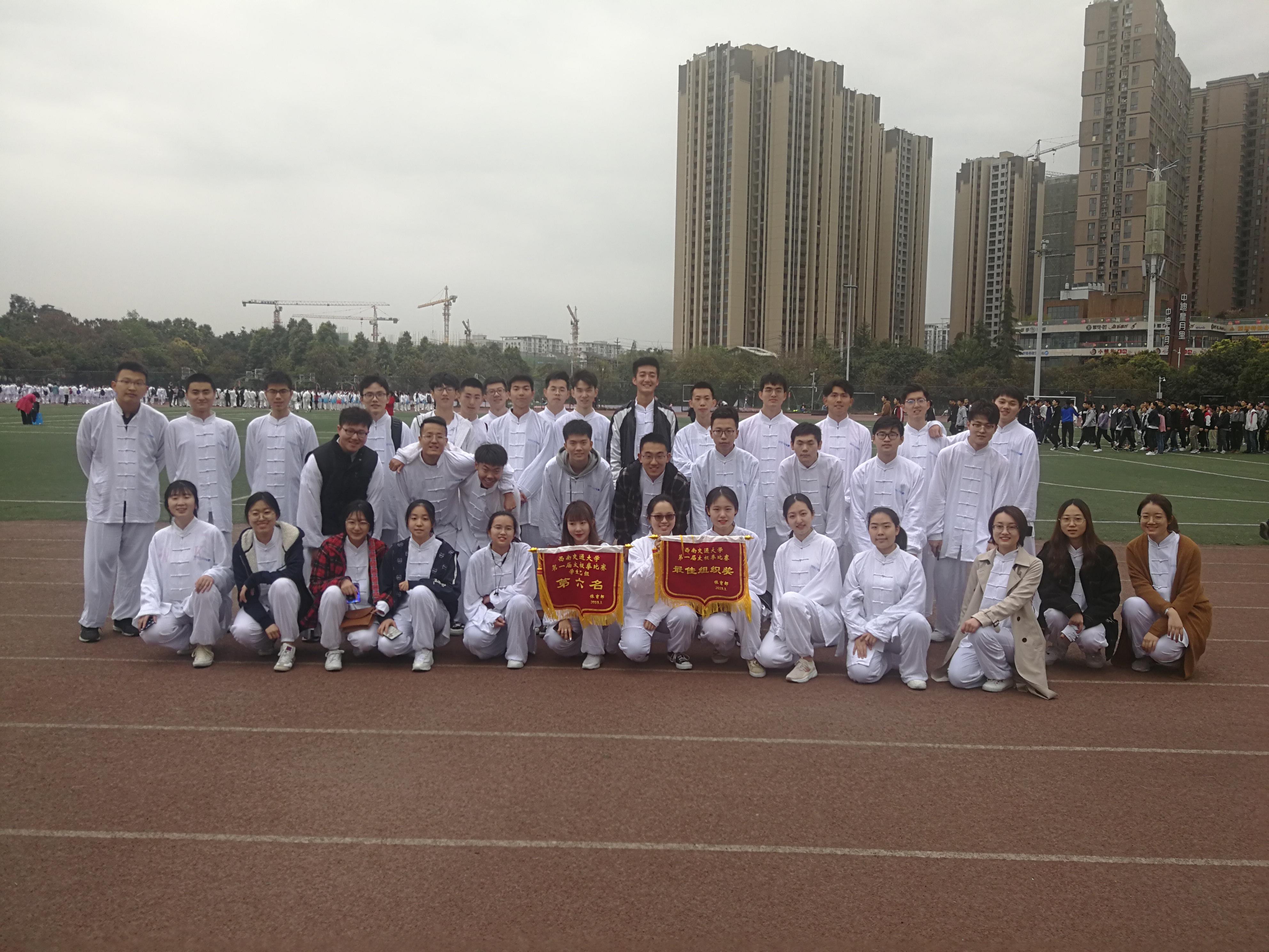 从报名到比赛,两周的时间,大一的小栗子们把搁置一个假期的太极拳在教练的帮助下,一点一点的找了回来。从一开始地动作“磕磕绊绊”,到逐渐可以熟练于每个动作、跟得上音乐节奏,再到每个细节的深究钻研、反复练习,小栗子们认真练习的身影随着太极拳音乐在运动场上一遍又一遍的舞动着。期间有动作生疏、音乐动作不协调等等问题出现时,体育部和同学们一起解决问题、与教练一同帮助小栗子们调整合适且正确的姿势动作。经常从傍晚练习到黑夜的他们,没有因为疲惫而放弃练习,因为起点比其他学院的同学低,所以小栗子们更加努力的在学习着,把他们在书桌上、对于知识的渴求的力量注入在了手足之间每一个动作中。在一次又一次的练习中,小栗子们逐渐进入状态,动作也变得整齐、有精气神,仿佛在他们的拳掌中间喊出了他们坚定的口号——全力以赴。