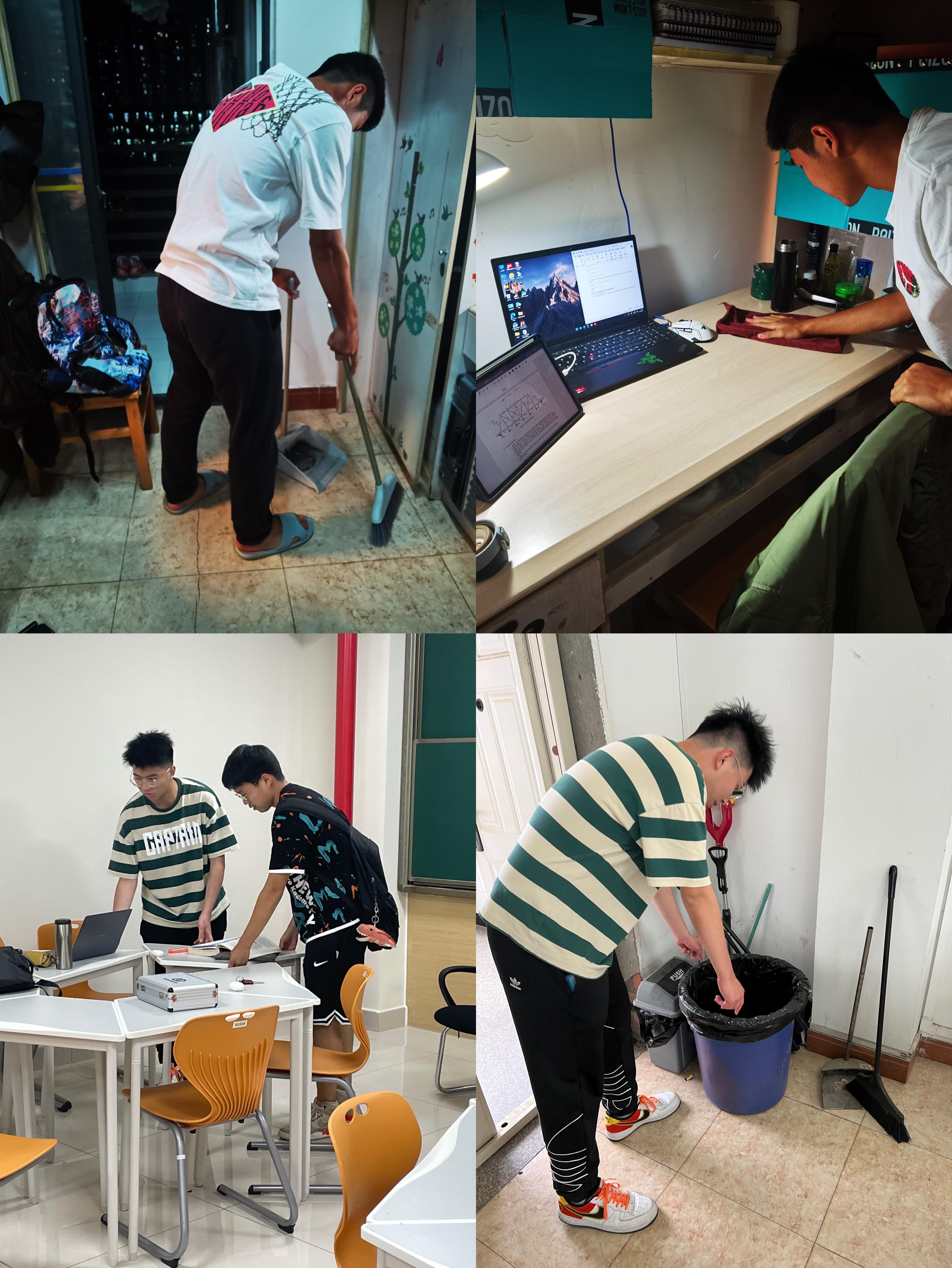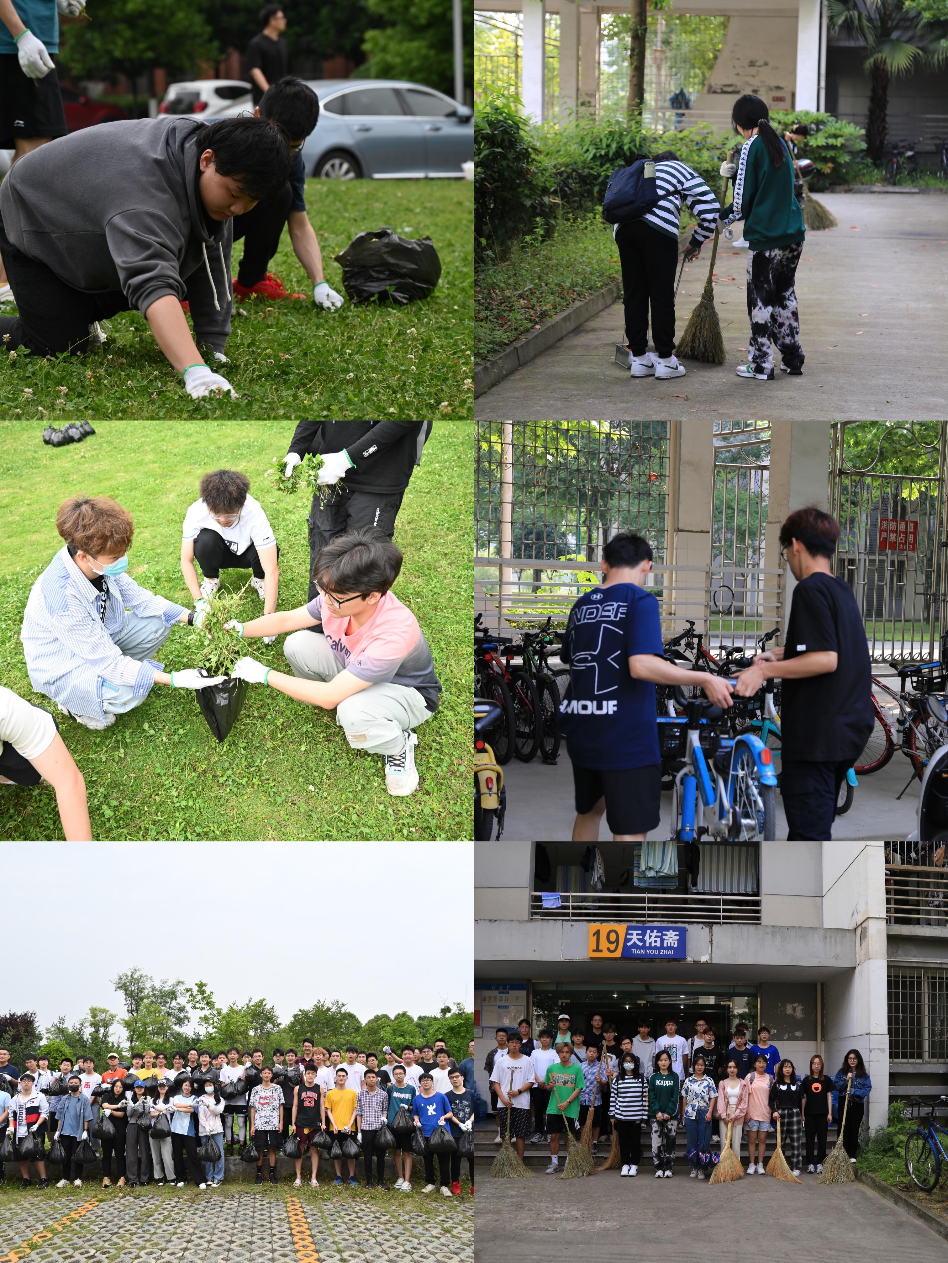 同学们对宿舍、园区自习室、学院公共学习区域及教室进行了打扫与整理。通过大家的通力合作,宿舍变得更整洁,教室变得更温馨。之外,在天佑斋19栋劳动实践区、九号教学楼后草坪等学校公共区域,同学们归整摆放自行车,及时处理杂物,重点清扫楼道周边及草坪上的垃圾与落叶。大家分工协作,热情高涨,经过几个小时的清扫,校园环境焕然一新。