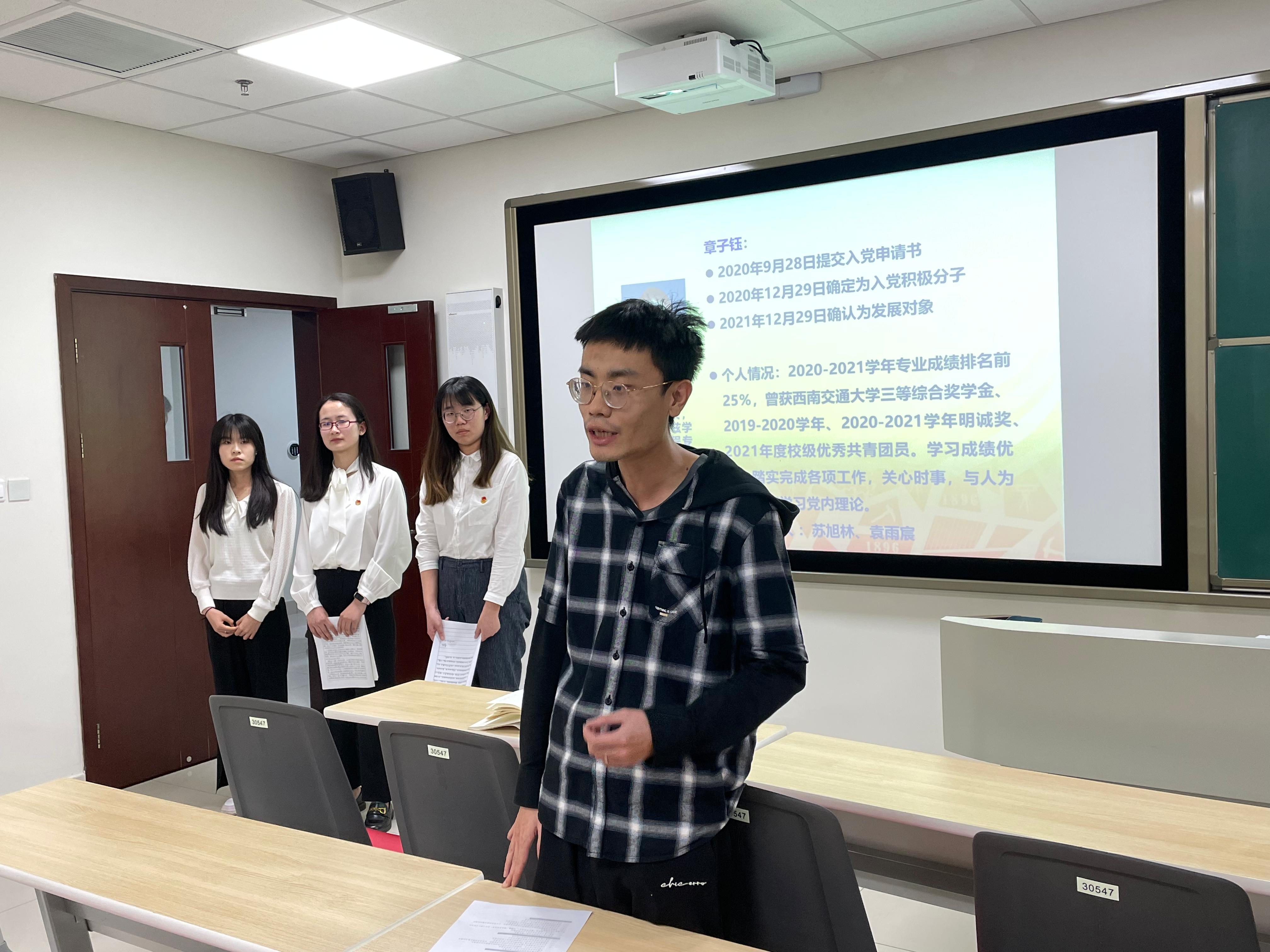 11名发展对象逐一宣读了入党申请书,向党组织汇报自己的入党动机、个人经历以及在校表现等,入党介绍人对发展对象的情况进行汇报并表明意见,随后大会与会人员对发展对象加入中国共产党事项进行了充分讨论,6名正式党员对11名发展对象加入中国共产党进行了无记名投票表决。