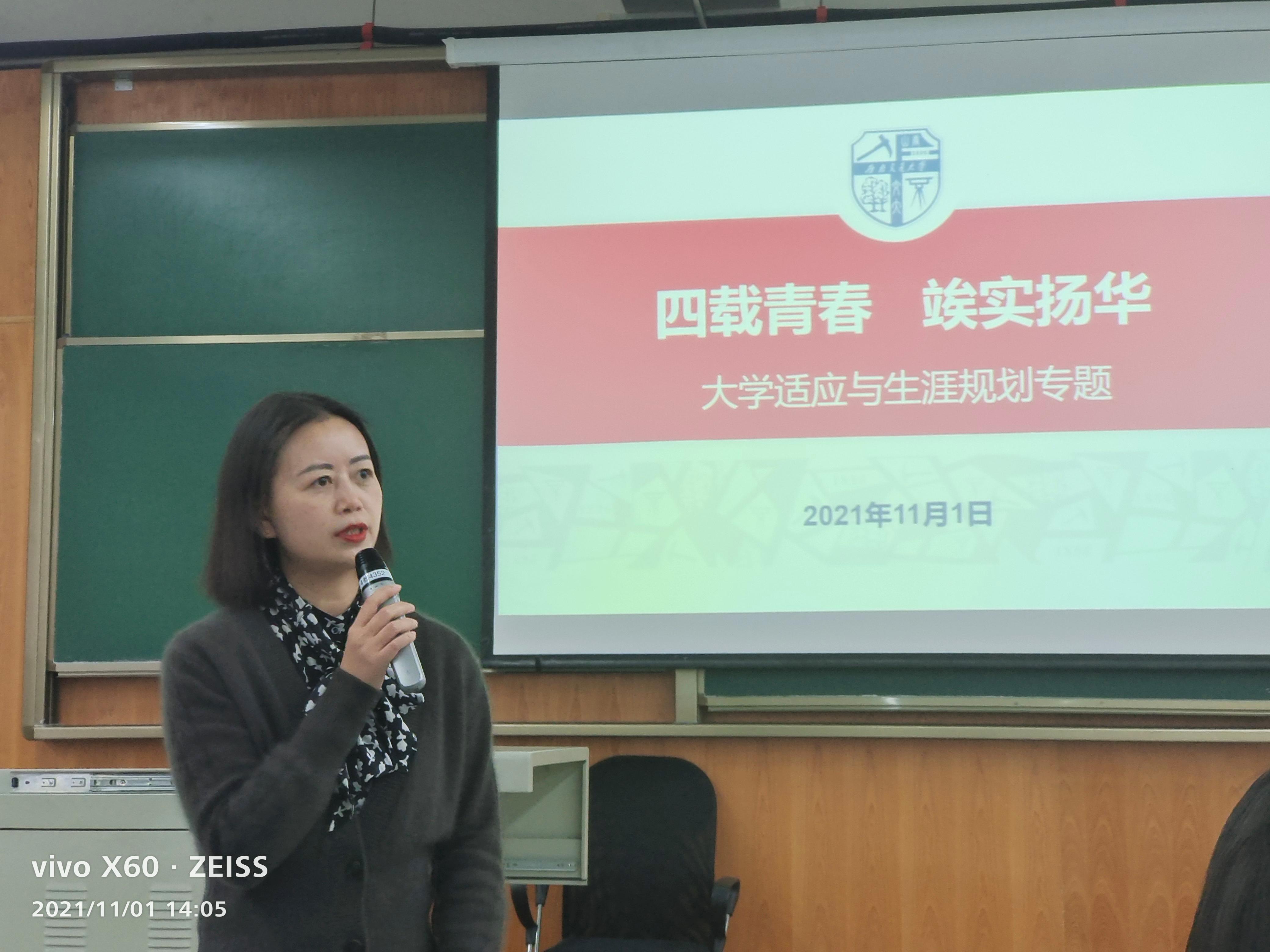 为引导同学们尽快树立职业生涯规划的意识,明确自己的未来发展方向,合理规划学习生活,度过充实的大学时光。11月1号14:00,伟德国际1949始于英国在X4359举行了“新生职业生涯发展规划教育专题讲座”。本次讲座邀请了邓秀芸老师担任主讲人。邓秀芸老师以“你理想中的大学是什么样的”的问题开场,引导同学们在纸上画出一颗“大学之树”,最后邓老师用“冰山原理”告诉大家,为了展示出来自己在海平面上的那一角,获得“大学之树”的果实,一定要在大学四年里发展并不断充实自己水下的能力。
