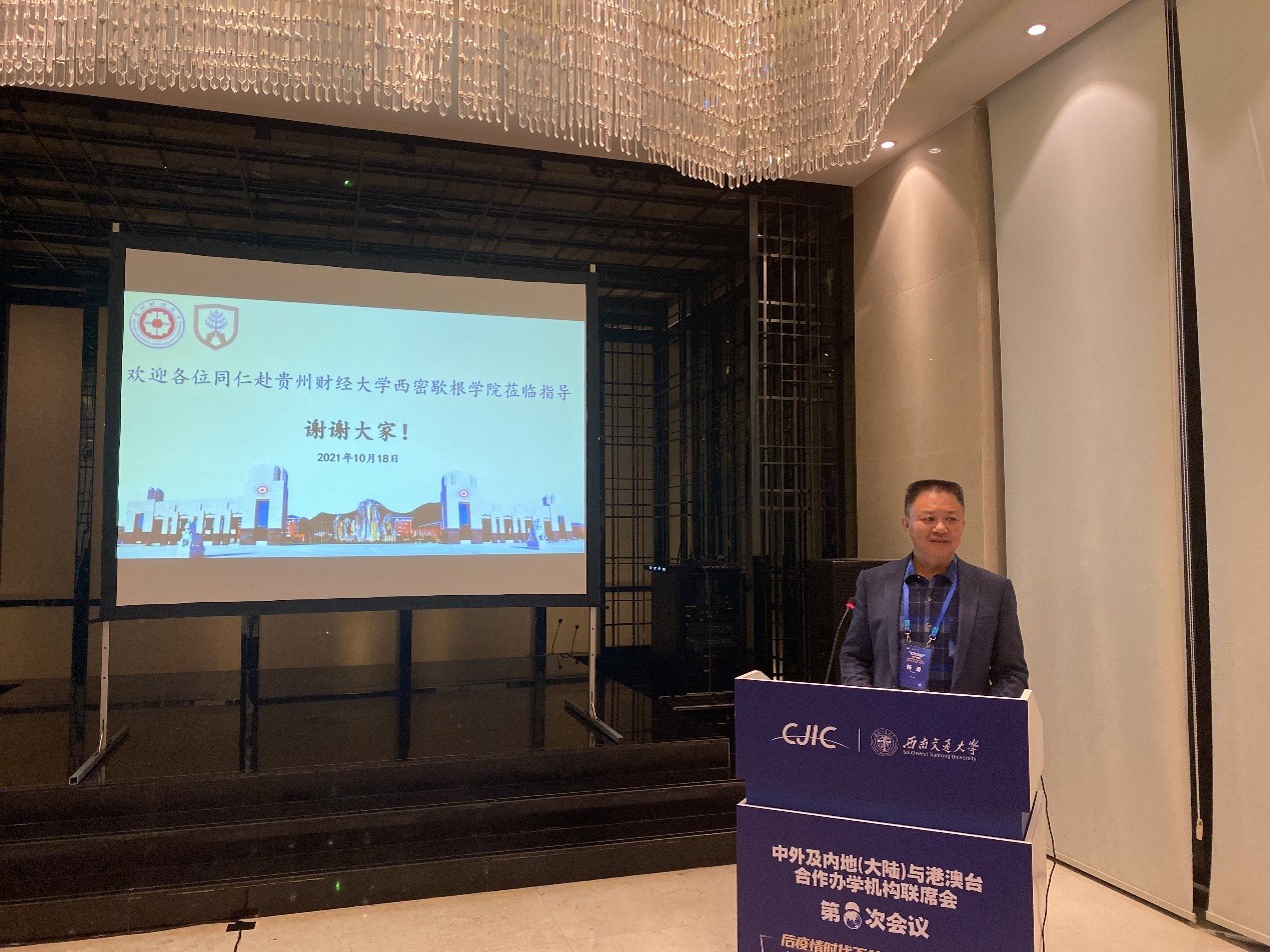 第一位发言嘉宾是贵州财经大学党委副书记、贵州财经大学西密歇根学院经理杨勇教授,发言主题为《切实用好用足国外优质资源,为员工高质量就业打下坚实基础》。杨勇介绍了贵州财经大学西密歇根学院的学院概况、教学资源、管理模式与办学目标。