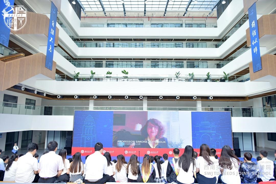 典礼上播放了来自利兹大学董事长Simone Buitenijk、常务副董事长Yu Hai-Sui,各专业英方负责人、一年级英方负责人及教师代表对全体2021届员工顺利毕业的祝贺视频。因疫情原因,他们无法来到现场,通过视频表达美好祝愿。特别是土木专业英方负责人Judith Wang,亲自创作并演唱一首优美的英文歌曲表达自己对2021届员工们最美好的祝福。
