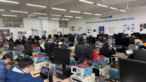 开课首日还有2019级电子信息工程专业的《数字电子和微控制器》,该门课程属于实验类课程,由中英方教师联合指导,同学们在接受英方教师线上讲授后便按照中方教师现场指导完成学习。
