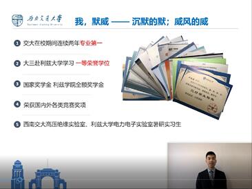卢默威因身处英国,所以以视频的形式参与了本次“竢实扬华奖章”的评选展示会。在视频中卢默威向大家介绍了自己的成长之路和自己对“竢实扬华”的理解。