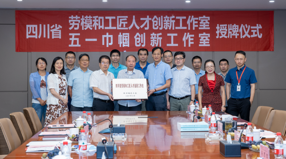 苗勇副主席一行首先参观了李群湛劳模创新工作室、西南交大职务科技成果改革孵化项目(成都尚华电气有限公司)同相供电系统实验平台。随后,听取了劳模创新工作室代表解绍锋教授,汇报李群湛劳模与工匠人才创新工作室情况。在省教科文卫工会刘晶副主席宣读四川省“劳模和工匠人才创新工作室”命名决定、四川省“五一巾帼创新工作室”命名决定之后,省总工会苗勇副主席、公司党委桂富强副书记为领衔人李群湛教授、易思蓉教授授牌。