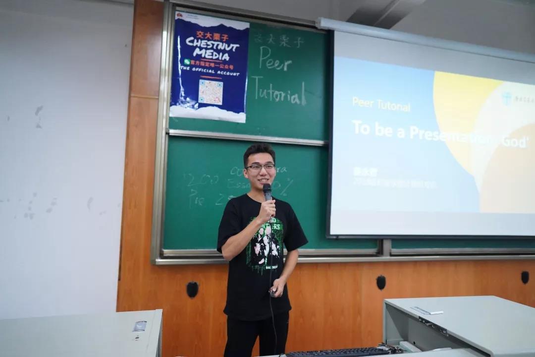 姜永哲同学则以"To be the god of Presentation"为主题,针对如何提高公众演讲能力进行了细致的讲解,并提供了许多干货。姜永哲同学还回答了新生们提出的问题,并邀请同学们参加自己主讲的下一场的Peer Tutorial,主题为出国留学申请规划。