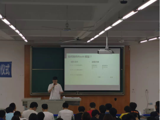 肖官衍、章以煊两位同学为大家讲解了赛题一——BIM 模型制作。他们主要从命题背景、赛题概况、评审方式、建模要求说明、图纸说明、需提交的成果和评分标准七个方面详细介绍了这道赛题,并为选这道赛题的选手们加油打气。