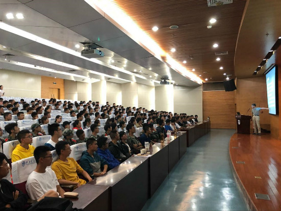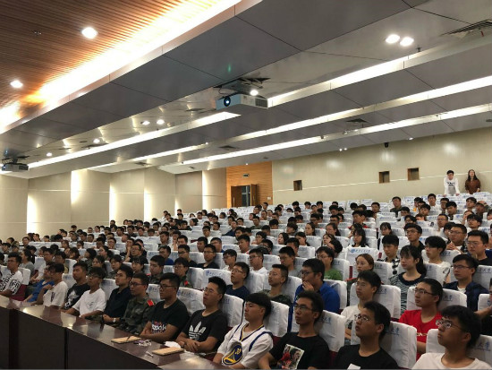 刚刚从军训场上下来,风尘仆仆的小栗子们迫不及待地踏入一报,他们秩序井然,有条不紊地静候着讲座的开始,前排的座位很快就占满了。