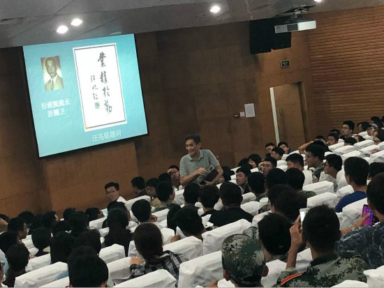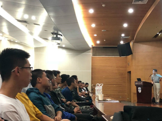 同学们听得津津有味,兴致勃勃。他们的目光追随着老师的手势,用耳、用心捕捉着他的一言一语,让其化为涓涓春水以温润心田,滋养那株热爱交大的幼芽。他们时不时拿出笔来,飞快地记下笔记。随着讲座的结束,母校的伟大形象已在栗子们心目里更趋于实、更向于美、更往于强。
