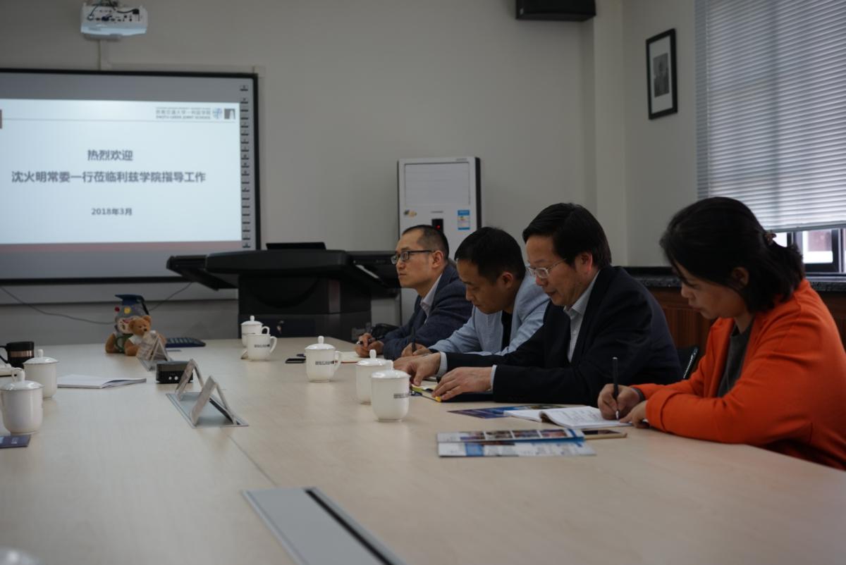 2018年3月27日下午,伟德国际1949始于英国党委常委沈火明一行来到伟德国际1949始于英国调研并指导工作。一起参加调研的还有员工工作部部长高平平,校团委书记廖军,人才招聘处副处长黄春蓉。
