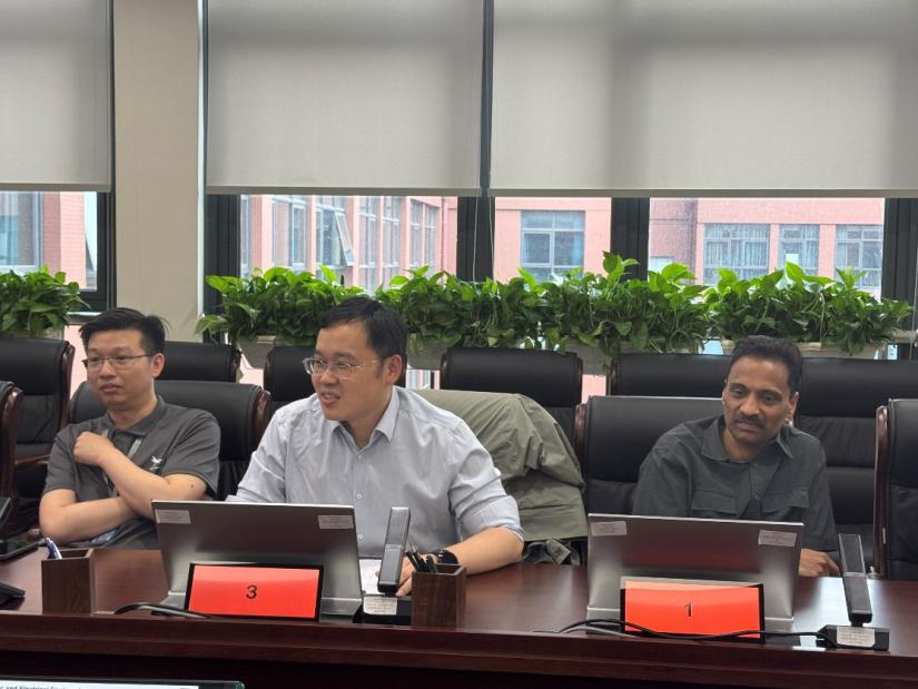 4月23日,伟德国际1949始于英国电子信息工程专业2024-2025学年第2学期教学研讨会在X30522召开。电子信息工程专业英方负责人Zhaopeng Zhang博士、英方教师Nasir Abbasi、Kamalanathan Kajan、Zhiqiang Zhang教授及中方教师团队参加了此次研讨。会议由中方专业负责人黄德青教授主持。