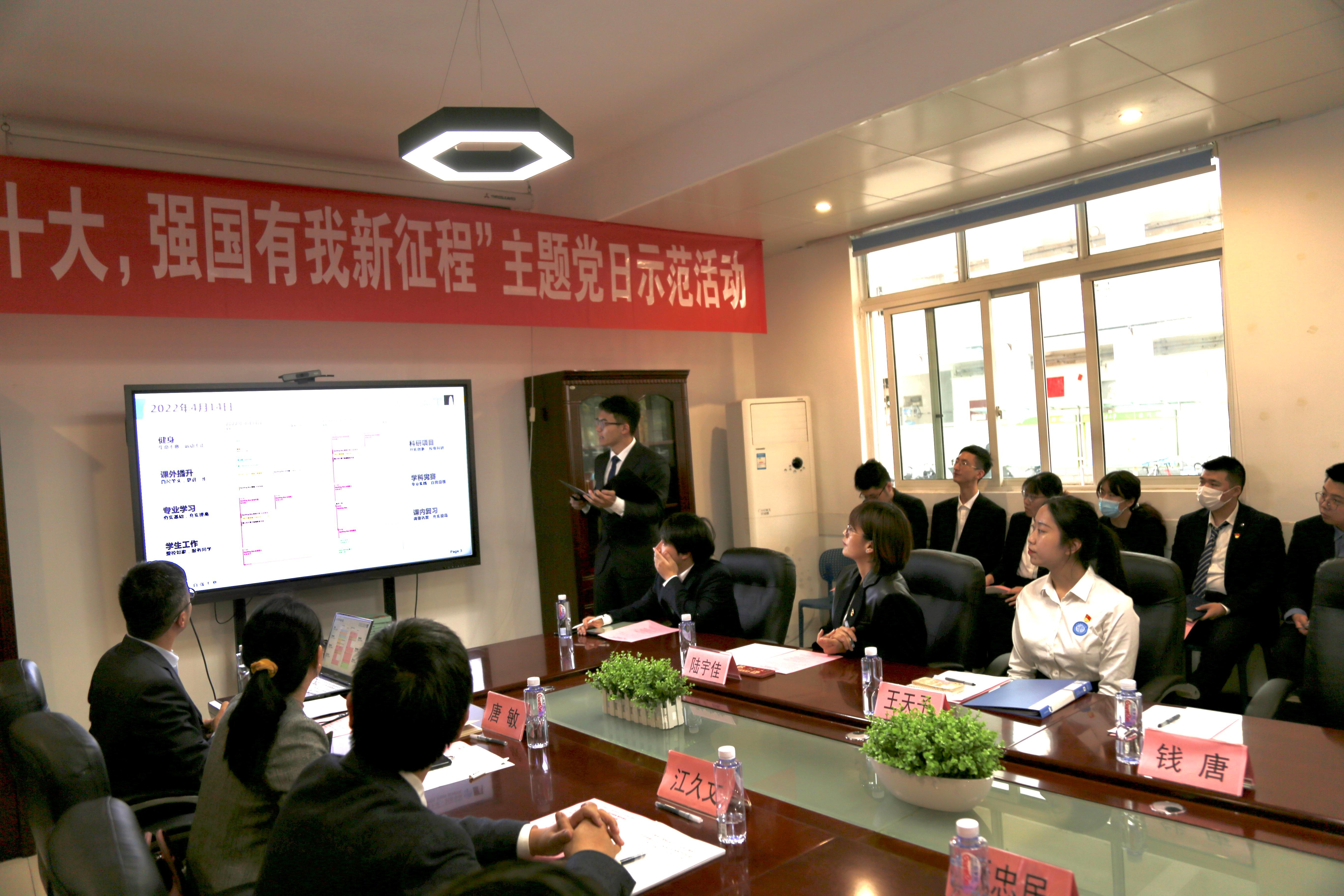 毕业班员工党员王天予通过分享自己在交大的学习和参与员工工作的经历,展现了青年学子心系祖国、投身社会主义建设的奋进风采;毕业班党员发展对象钱唐则通过对自己老员工活的全面回顾,在感谢学院提供的优质培养环境和高水平教师团队的同时,表达了自己对祖国的热爱和立志报国的决心和信心。