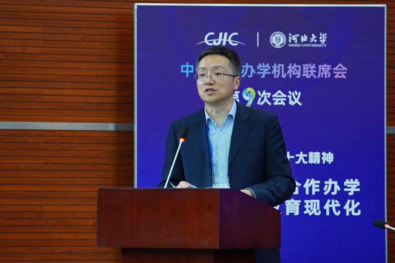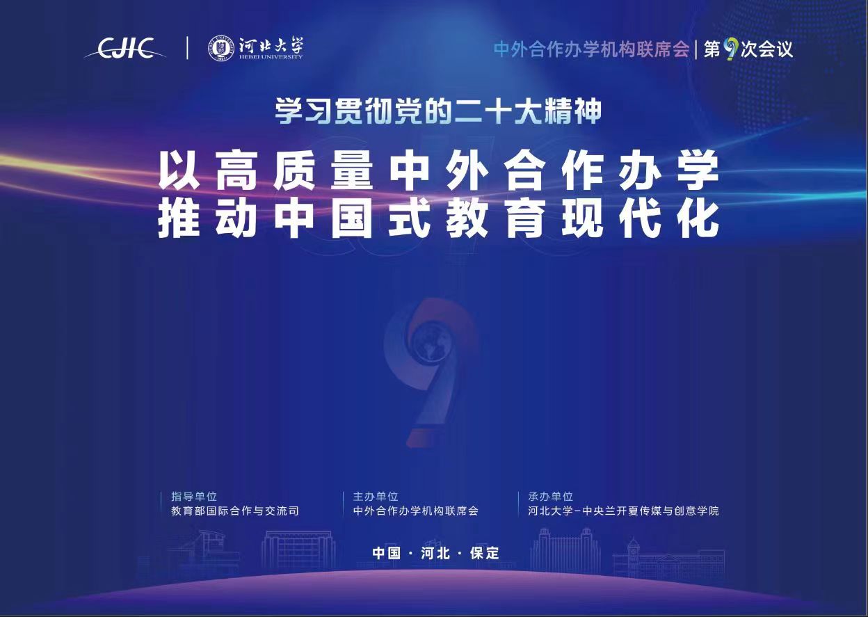 4月25至27日,中外合作办学联席会在河北保定召开第九次全体会员大会。本次会议由教育部国际合作与交流司指导、中外合作办学联席会主办、河北大学-中央兰开夏传媒与创意学院承办。会议主题是深入学习宣传贯彻党的二十大精神,加快推进教育现代化、建设教育强国、办好人民满意的教育,加强中外合作办学院校间的交流互鉴,促进高等学校中外合作办学高质量发展,更好地发挥中外合作办学在推进中国式教育现代化进程中的作用。