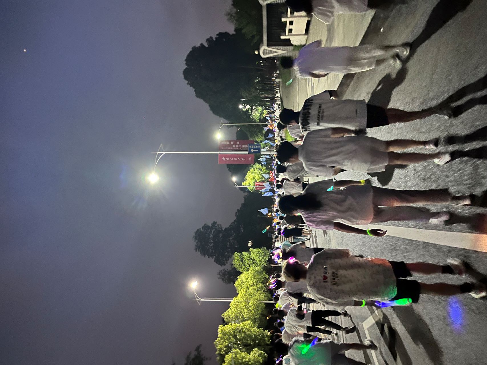 5月4日晚上,学院综合素质发展中心组织青年员工参加“致青春 星光不负赶路人”主题荧光夜跑活动,在南门、西门和国旗台三个打卡地点参与答题游戏,完成3公里环校荧光夜跑。