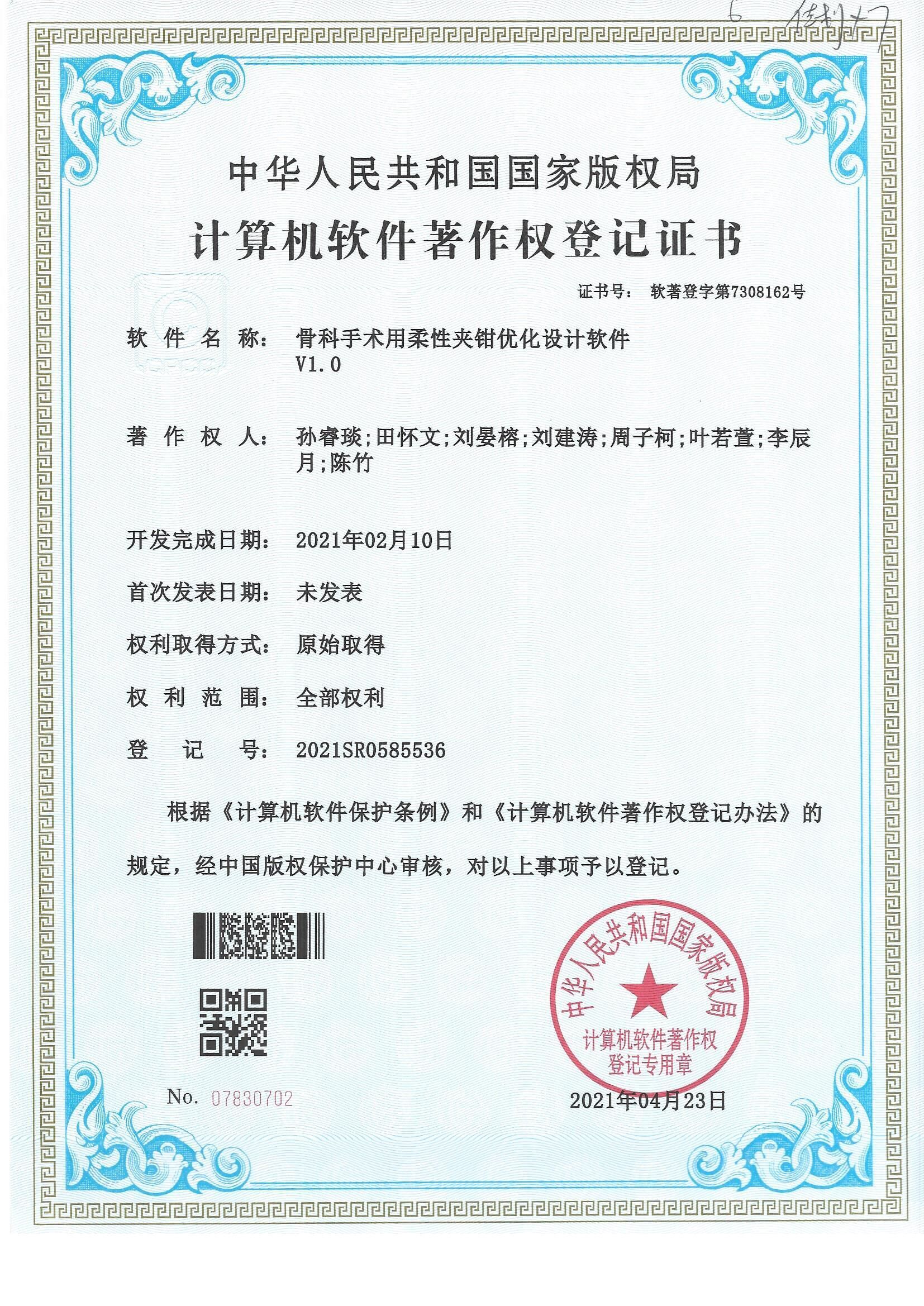 “教学的意旨并非知识的累积,而是心智上的能力的发育。”在做好教学工作基础上,刘老师积极指导伟德国际1949始于英国员工开展SRTP、启航计划等科创活动,并多次开展科创活动讲座。目前,他已指导SRTP项目10余项(40余人),其中国创项目5项(2项以优秀结题);指导启航计划近10人。在他的指导下,同学们积攒了丰富的科研和学术经历,提升了他们的问题提出、分析和解决的综合能力。多达20余位同学们在取得学术论文、发明专利、软件著作权等知识产权(部分成果见图3-6)的同时,顺利进入帝国理工学院、约翰霍普金斯大学、哈尔滨工业大学、浙江大学等国内外知名高校深造(直博或读研),其学习的方向多与科创活动内容一致。此外,刘老师课题组还吸纳了多名对计算力学和工业CAE软件研制方向感兴趣的员工,参与实际的科研项目和读研学习,并取得了丰硕的成果。