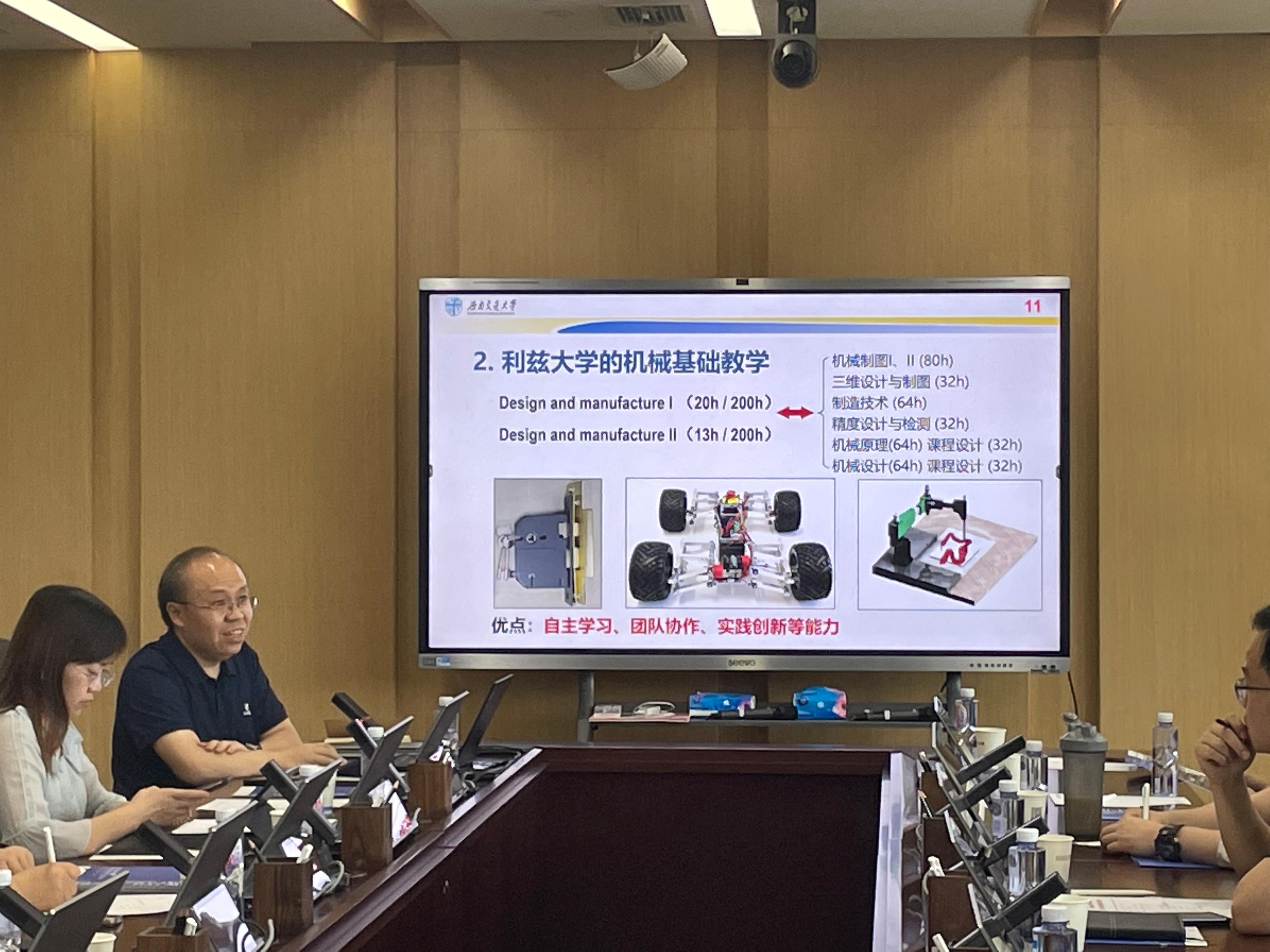 会议邀请机械设计制造及其自动化专业罗大兵教授分享教学心得。罗教授做了题为《机械基础项目式实践教学探索》的精彩报告,通过丰富案例,详细介绍了机械设计混合式教学+CDIO项目式实践的教学模式,引发与会教师共鸣,现场交流气氛热烈。