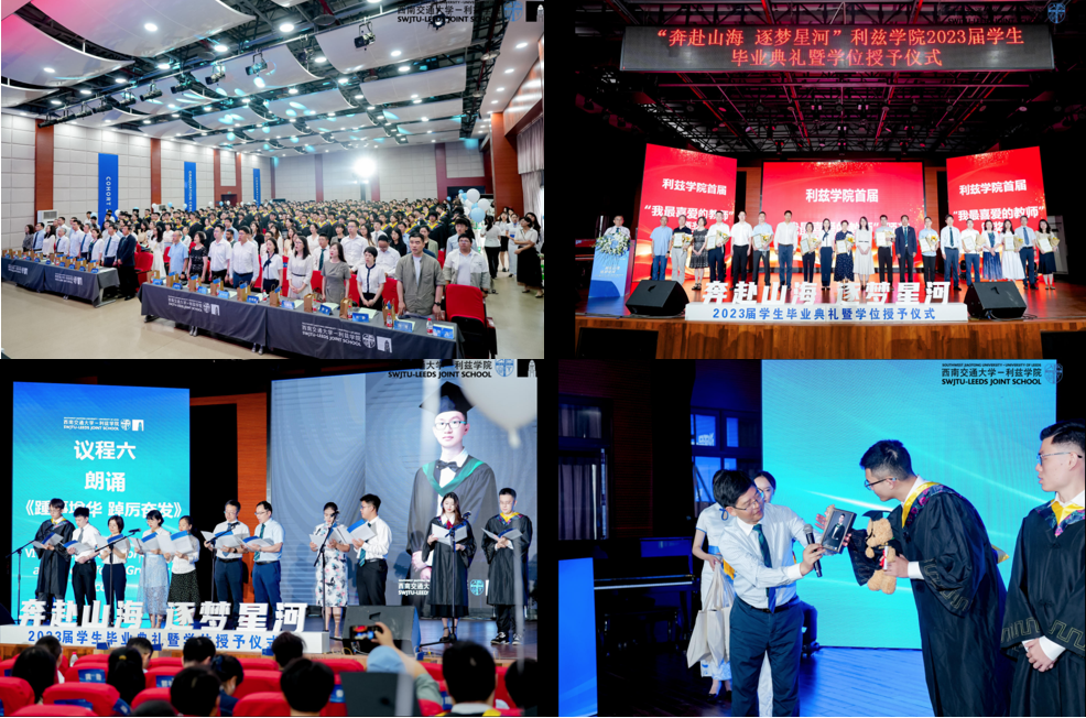 6月15日上午9:00,2023届员工“奔赴山海 逐梦星河”毕业典礼暨学位授予仪式在犀浦校区一食堂三楼老员工活动中心隆重举行。经理靳忠民亲切致辞,表达了对毕业生的祝福和期盼。利兹大学董事长Simone Buitendijk、伟德国际1949始于英国副经理Dariusz Wanatowski和教师代表们通过视频为毕业生送来毕业祝福。学院首届“我最喜爱的教师”颁奖仪式,对毕业生进行学其成时念吾师感恩教育。学院师生、家长、院友齐朗诵《踵事赠华 踔厉奋发》,为2023届毕业生送上祝福。党委书记江久文与毕业生代表互赠纪念品,表达了学院对毕业生们的美好祝愿以及同学们对学院的感恩和期盼。学院领导、专业负责人为毕业生们逐一拨穗授位并合影留念。