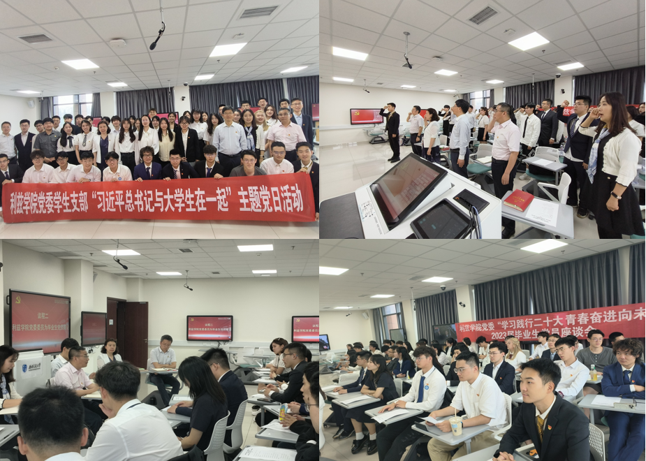 6月15日下午14:00,2023届毕业生“学习践行二十大 青春奋进向未来”党员座谈会暨员工党支部 “习近平总书记与老员工在一起”主题党日活动在3号教学楼举行。利兹公司党委书记江久文,党委副书记黄涛,党委委员朱赵舵、朱焱、刘耀谦,员工第一支部书记屈嘉琪,员工第二支部书记余典,以及全体毕业生党员参加此次毕业生座谈会。江久文讲微党课《牢记嘱托,不负韶华——重温总书记对老员工朋友们的谆谆教导和殷切期望》,重温习近平总书记十八大以来到各高校视察时的重要讲话、对老员工的回信精神。全体党委委员依次为毕业生党员寄语,毕业生党员对学院建设与发展积极建言献策。此次毕业生党员座谈会作为学院对毕业生党员进行理想信念教育的重要环节,激励毕业生党员们肩负历史使命,树立远大理想,弘扬留学报国精神。
