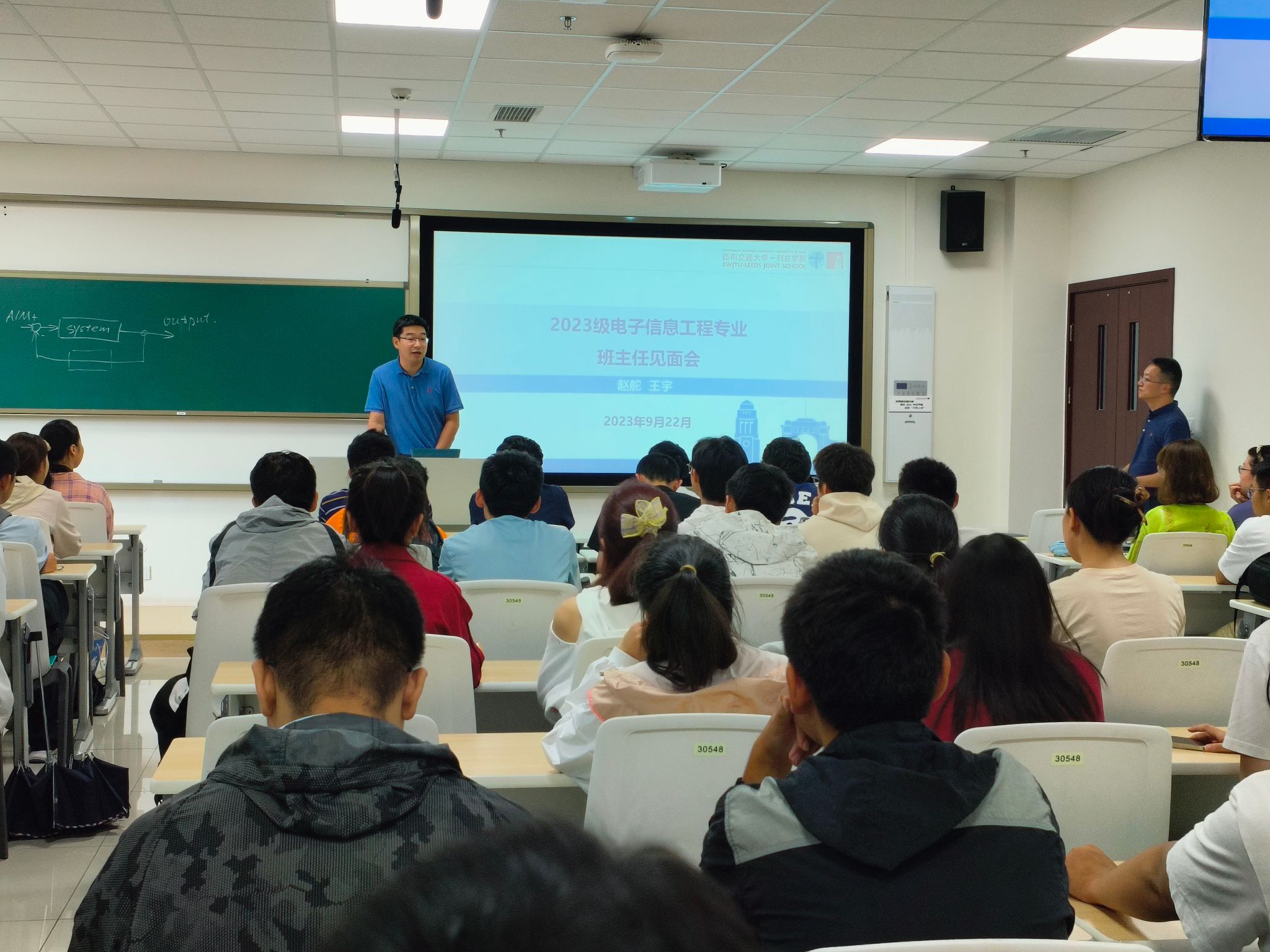 电信一班班主任、学院副经理赵舵鼓励同学们树立自己的人生目标,并通过大学四年学习的途径逐步实现。电信二班班主任、学院综合事务中心主任王宇希望同学们加强体育锻炼、劳逸结合,为祖国的建设添砖加瓦。