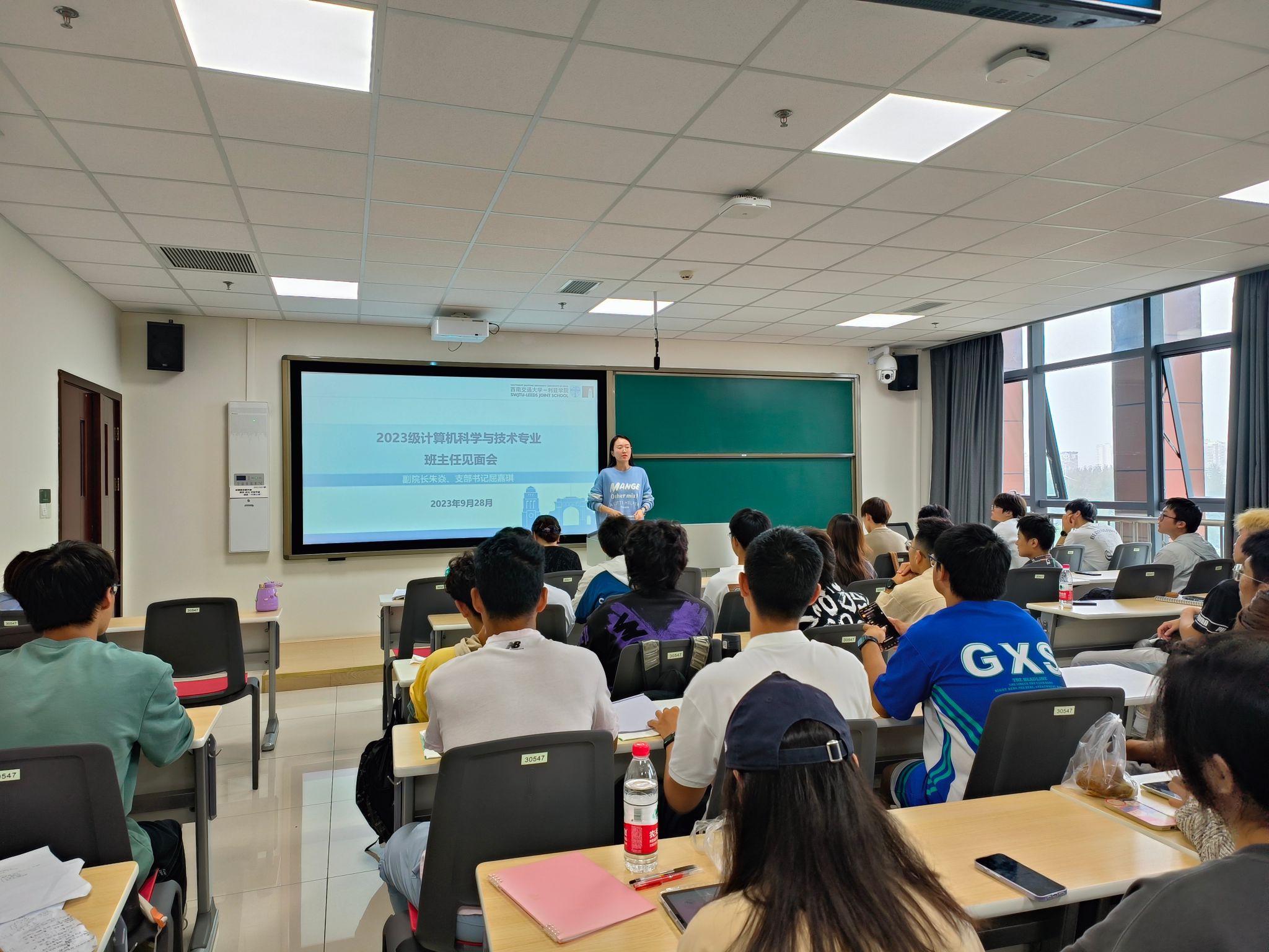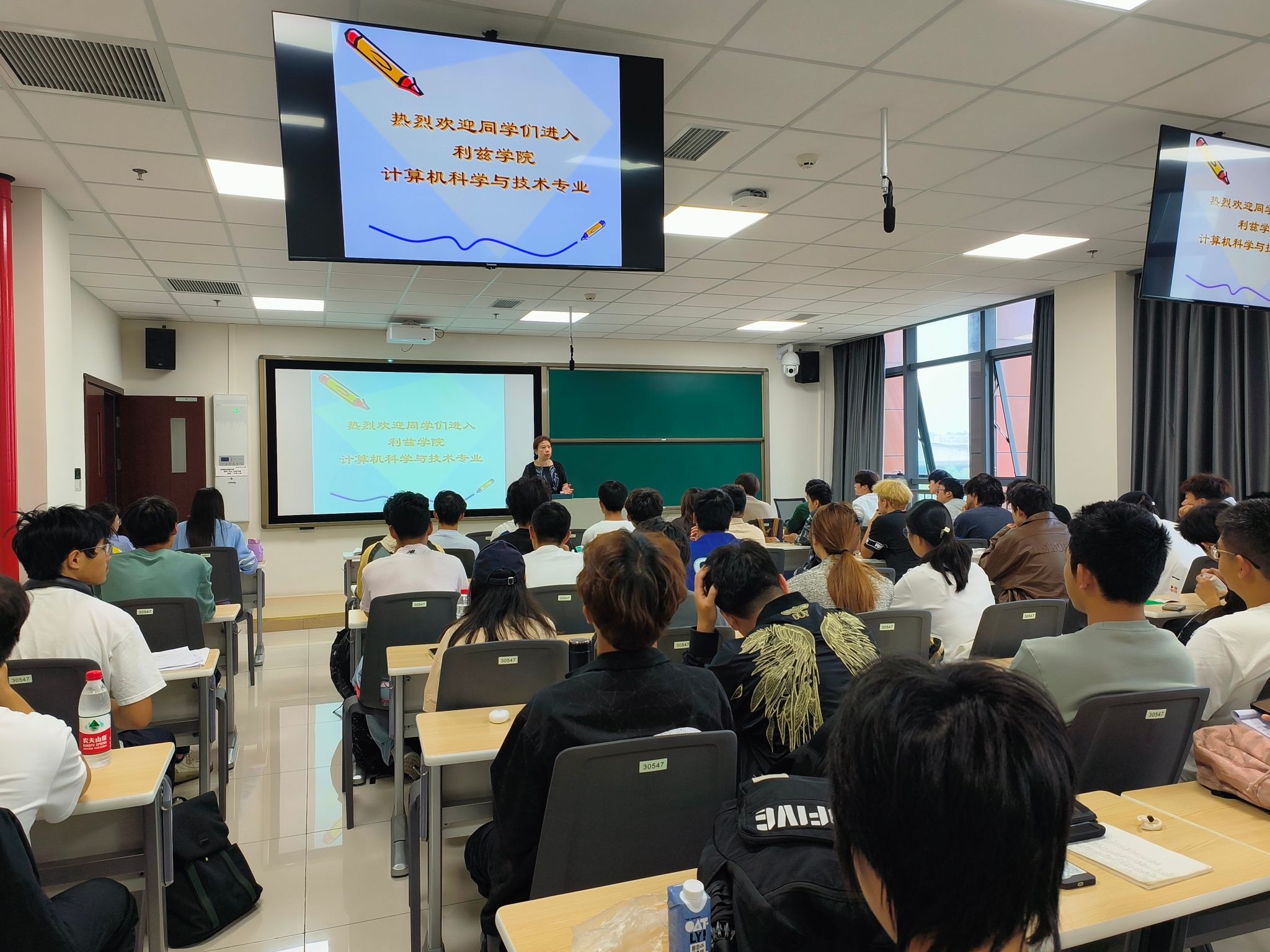 计科一班班主任、学院副经理朱焱详细介绍计算机专业学科背景,前沿方向,从专业的角度让同学们对自己的专业以及未来的学习任务有更加清晰的认识。计科二班班主任、员工第一党支部书记屈嘉琪希望同学们树立远大理想,认真学习大一课程,并鼓励大家多尝试参与员工工作和加强运动。
