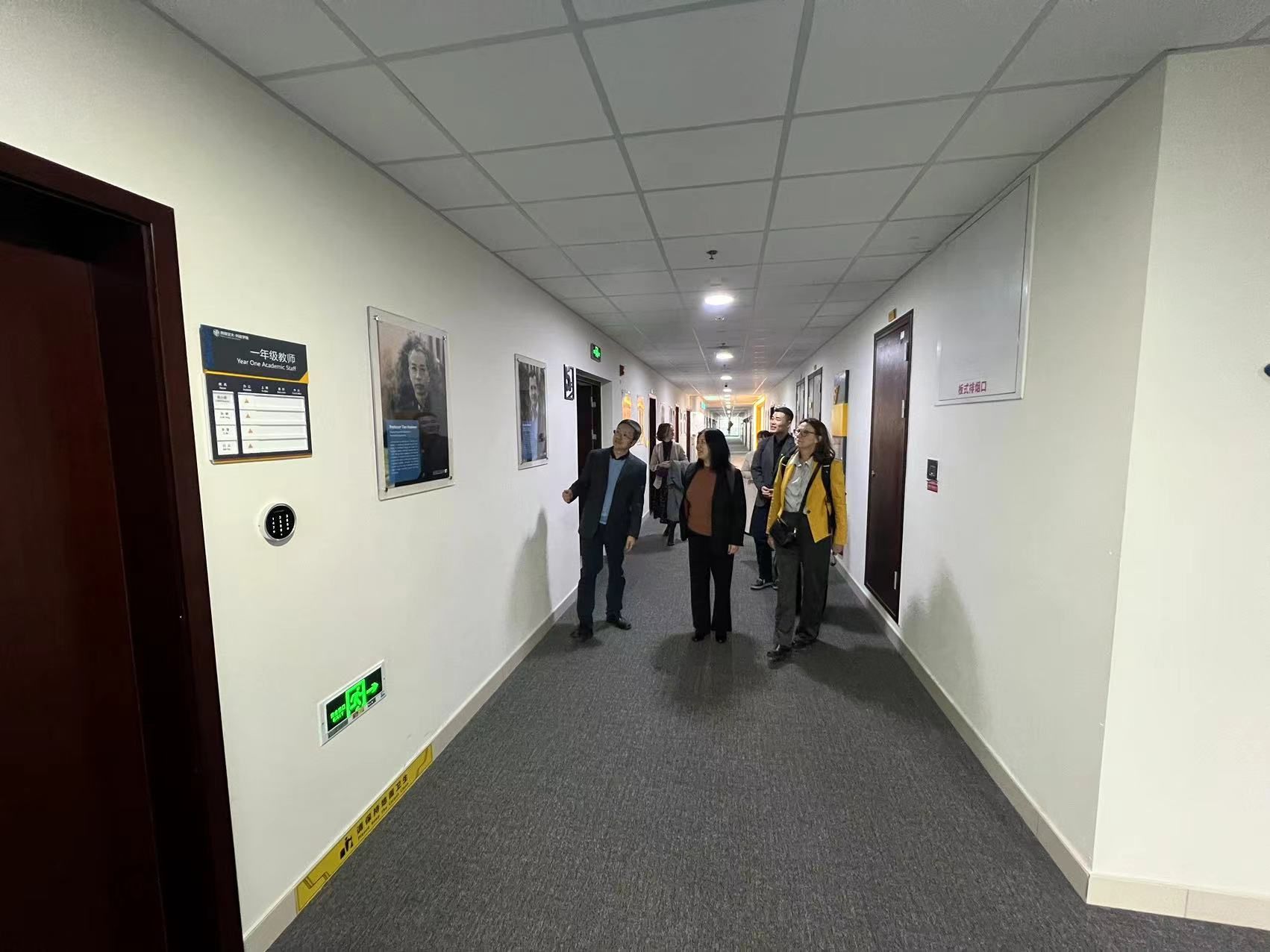 Helen Foster一行参观了学院的教学场所、办公场地,赵舵介绍了学院的公司产品、人才培养、环境设施等方面情况。Helen Foster一行对学院的教学环境、文化建设表示赞赏,双方就扩展深化合作等方面进行了交流。