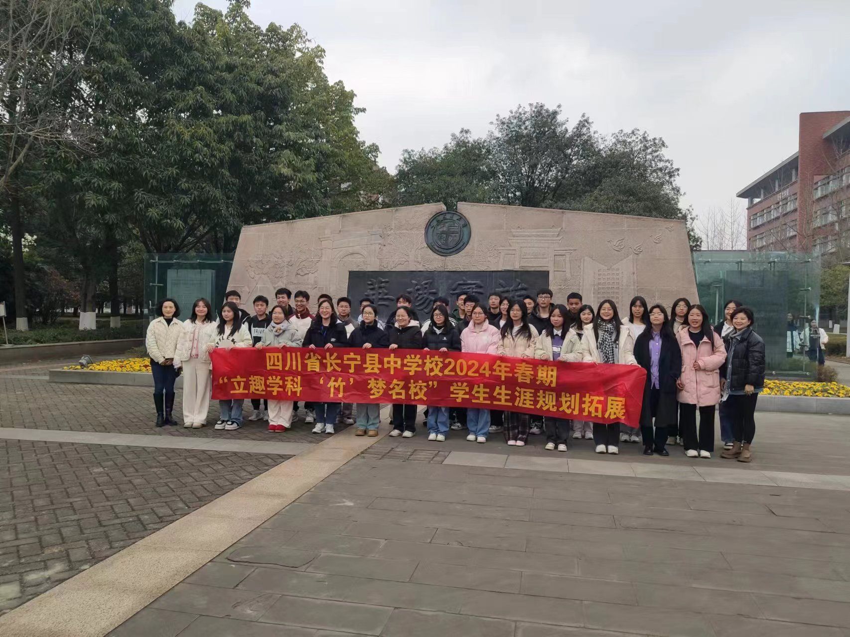 随后,同学们在校园大使李家成同学的陪同下,沿着犀浦校区的“南北人文轴”进行了参观。从机车博物馆到“竢实扬华”碑,再到孙中山先生像,每一处都充满了交大深厚的历史文化底蕴。通过李家成同学的讲解,同学们不仅了解了交大的发展历程,还感受到了交大先辈们爱国荣校的崇高精神。