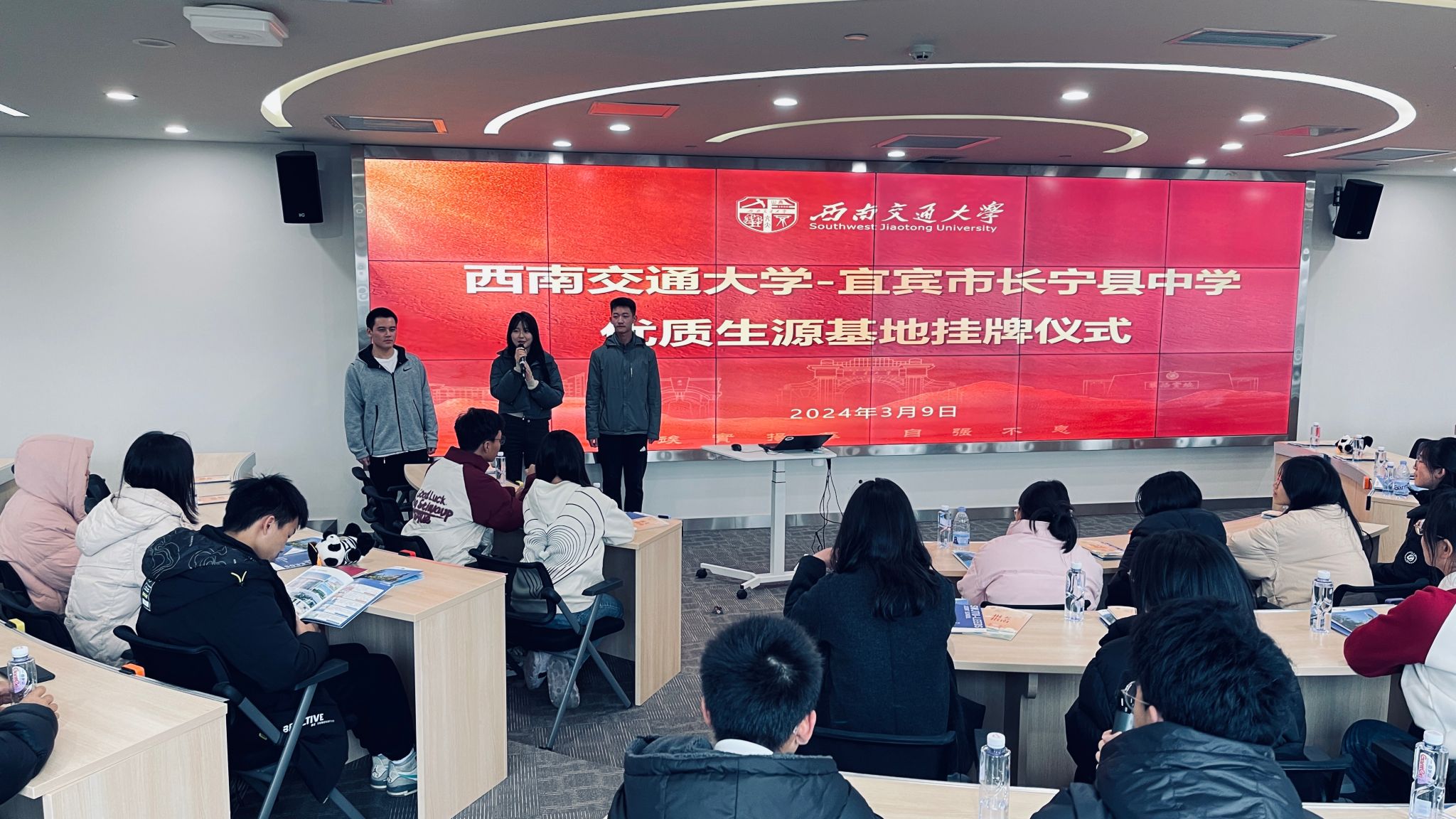 下午3时,同学们参观伟德国际1949始于英国办学设施和学习环境。利兹公司党委副书记刘耀谦对同学们的到来表示热烈欢迎,并简要介绍了学校的发展历史和伟德国际1949始于英国的培养模式等。随后,刘耀谦与李洁共同为伟德国际1949始于英国-宜宾市长宁县中学优质生源基地揭牌。