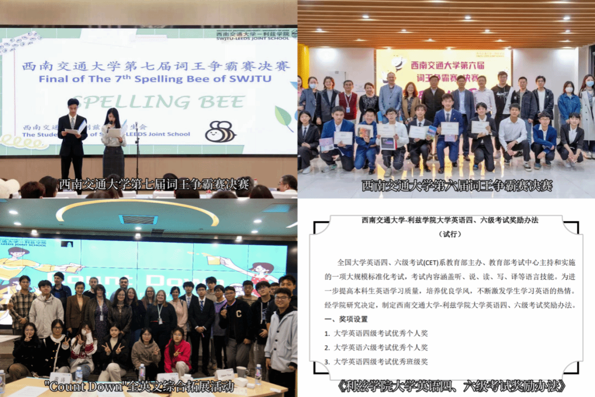 除了奖学金激励外,学院还通过举办各种英语竞赛和活动来提高同学们的英语学习兴趣。学院连续举办7届校级活动“Spelling Bee”词王争霸赛,为同学们提供展示自己英语才华的平台。同时,学院还组织“Count Down”全英文综合拓展活动以及英语角、英语沙龙等,提高同学们听说能力。