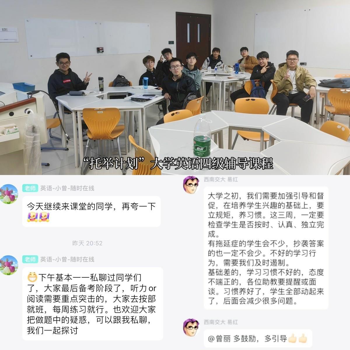 为了帮助同学们熟悉大学英语四级考试环境,学院组织了2场覆盖350名新生的四级模拟考试。2场考试不仅模拟了真实的考试环境,更检验了同学们的英语学习成效,帮助教师找出员工的薄弱环节并提供相应的辅导与支持。学院还邀请资深英语教师开设5场“启程计划”讲座,全面覆盖所有新生,旨在为他们提供全方位的考试指导和帮助。通过深入剖析考试内容、细致解读考试要点,引导员工明确复习方向,有效提升应试能力,激发学习动力和信心。同时,学院还利用线上平台,为大家提供丰富的英语学习资源,如英语学习视频、在线四六级习题等,方便同学们随时随地进行学习。