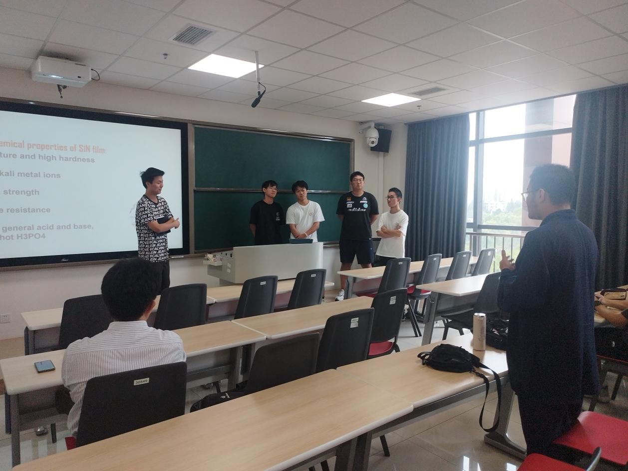 在上述现场实习结束后,同学们以组为单位,结合在实习过程中查阅的文献,进行了认识实习答辩。每一小组讲述三星堆一件文物的材料成分、熔炼方法、制备过程中防止缺陷出现的方法等,以及通威太阳能金堂公司高效晶硅电池一个生产环节的详细过程。通过每一小组的答辩报告,同学们从材料科学的角度,对实习内容有了更深入的理解,并期待在大二至大四的学习过程中掌握好更多的材料专业知识。