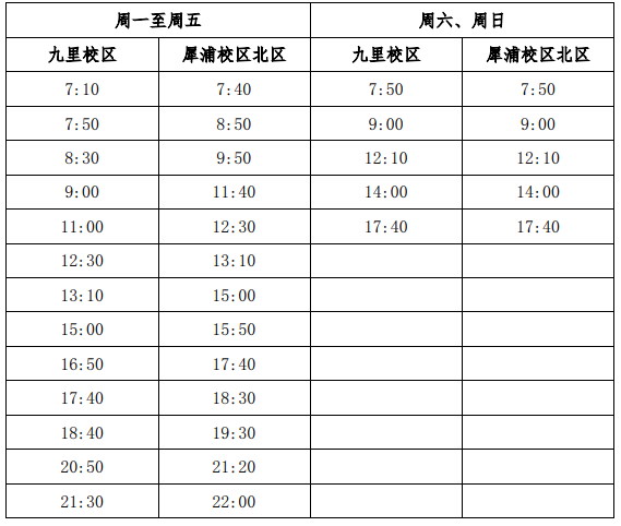 根据学校 2022-2023 学年寒假放假安排,成都两校区交通车寒假期 间(2023年1月14日至2月16日)停运,于2023年2月17日起恢复正常运行(后附交通车时刻表)。