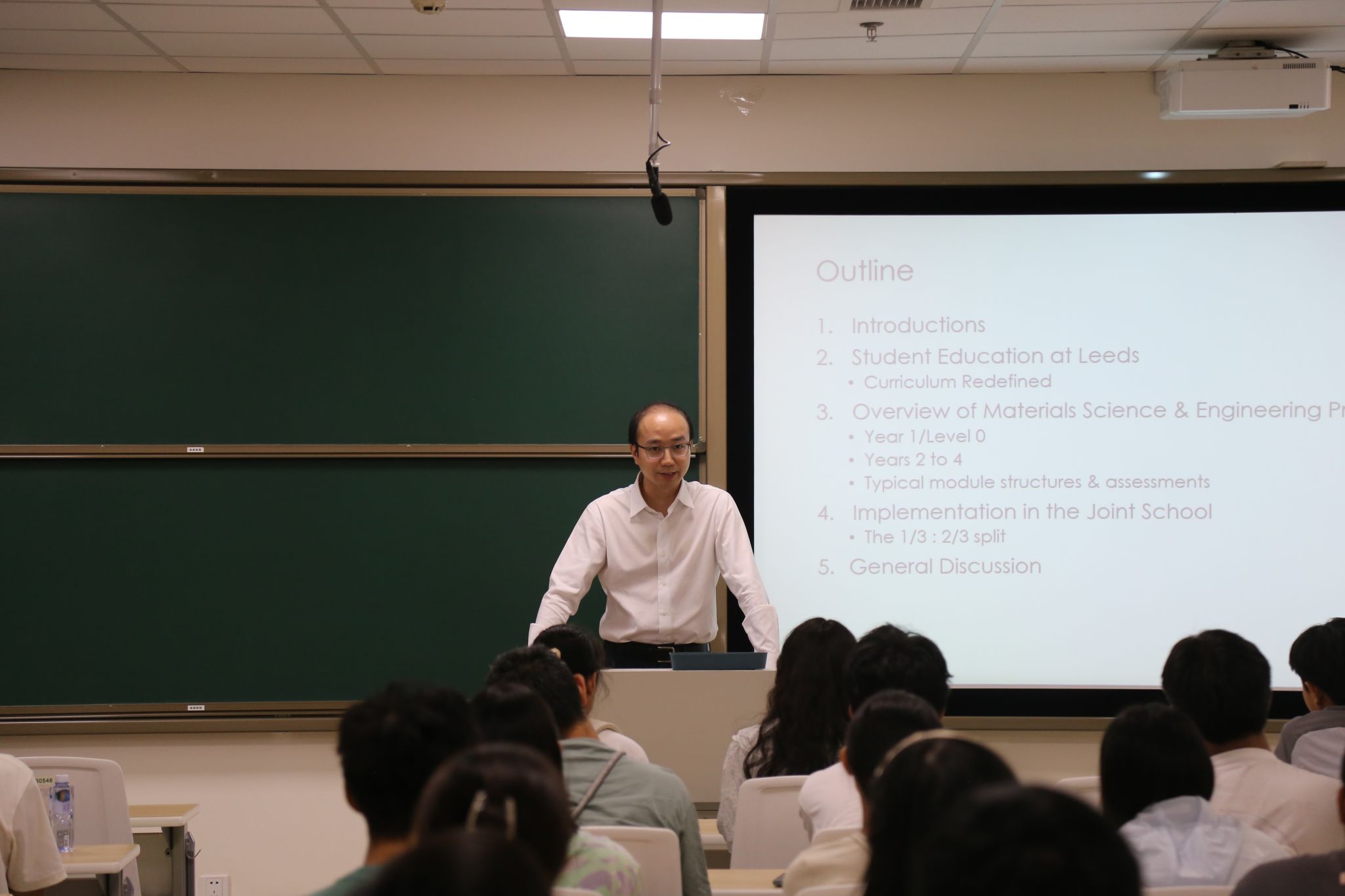 Zhilun Lu, programme director, started the induction by introducing the Bragg Centre of the University of Leeds named after the Nobel Prize-winning scientist William Henry Bragg. Then he detailed the curriculum of the materials science programme, emphasizing the study of physics, chemistry, materials, and other modules which are very important for in-depth study of the programme.