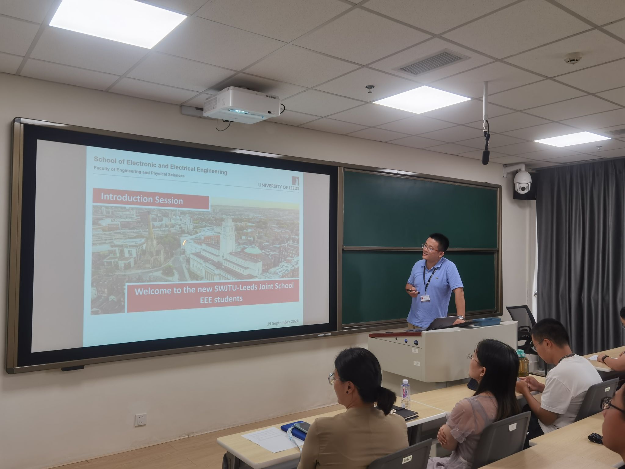 Zhaopeng Zhang, programme director, shared the interesting British culture, beautiful scenery and campus life of the UoL before introducing the electronic and electrical engineering programme in a humorous, illustrative and impressive way. He encouraged the EE students to arrange their time reasonably in the School and enjoy college life.